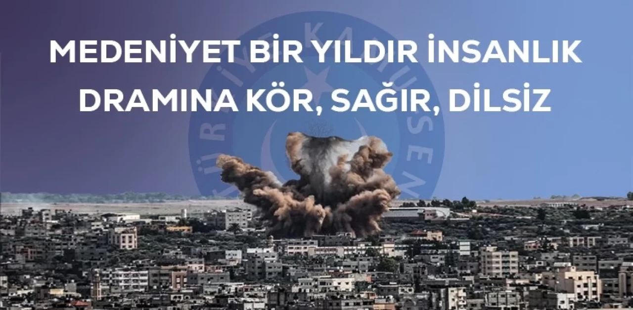 "7 Ekim, Filistin halkının yıllardır maruz kaldığı baskı, zulüm ve işgalin sembolü haline gelmiş Gazze’de yaşanan insanlık dramının birinci yıl dönümüdür. Bugünden sonra İsrail’in kan donduran saldırıları ile hayalet kente dönüşen 2 milyon nüfuslu Gazze'de 16 bin 500’ü çocuk en az 41 bin 165 kişi öldürüldü, 96 bin kişi yaralandı, 10 binden fazla Filistinli ise kayıp olarak aranıyor. Bu acı dolu günde, Filistinli kardeşlerimizin yanında olduğumuzu bir kez daha dile getiriyor, haklı mücadelelerine olan desteğimizi yineliyoruz.