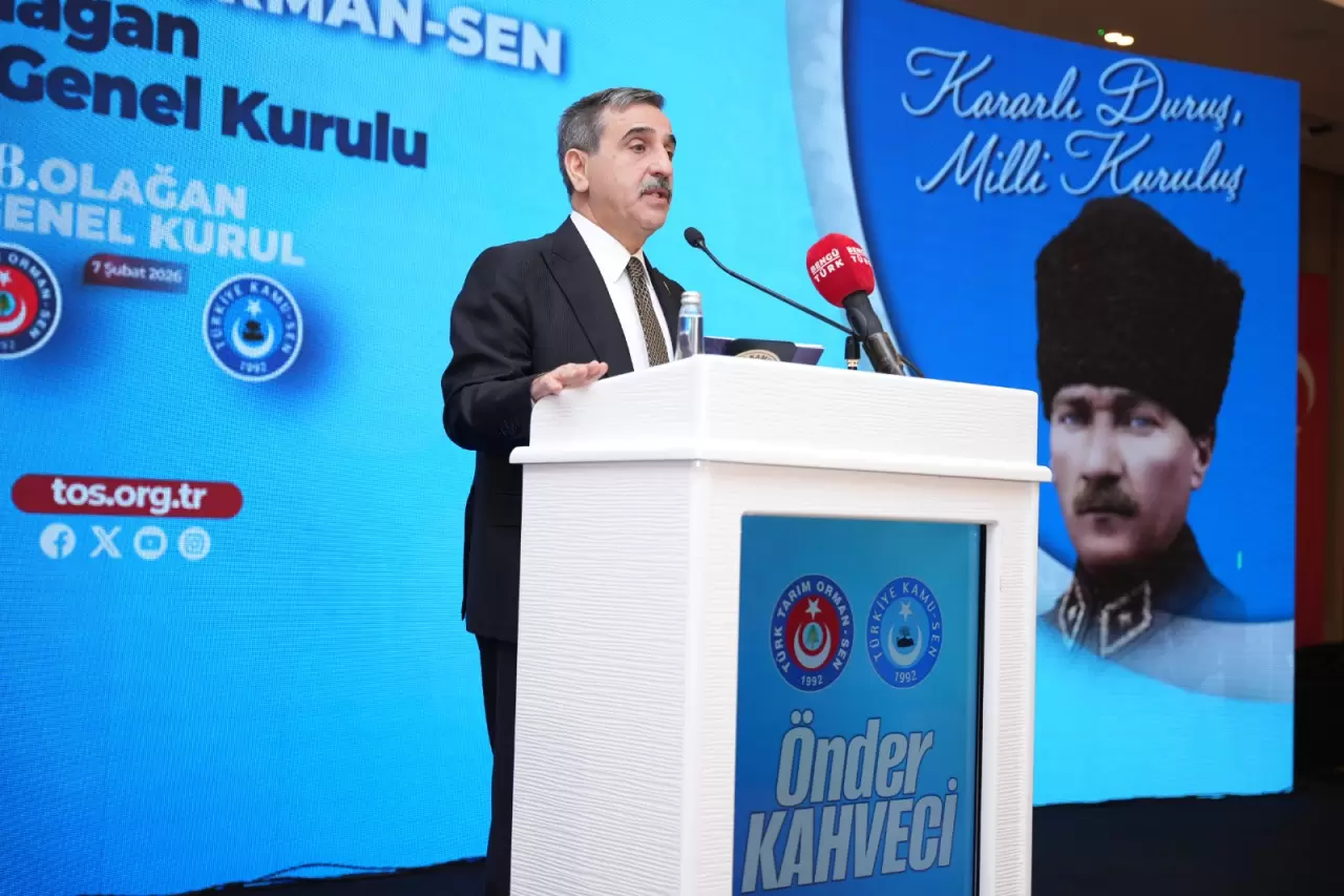 Türkiye Kamu-Sen Genel Başkanı Önder Kahveci, Türk Tarım Orman-Sen 8. Olağan Genel Kurulu'nda yaptığı konuşmada, sendikal mücadelenin milli değerlerden bağımsız düşünülemeyeceğini ve tarım sektörünün stratejik bir güvenlik alanı olduğunu vurguladı.