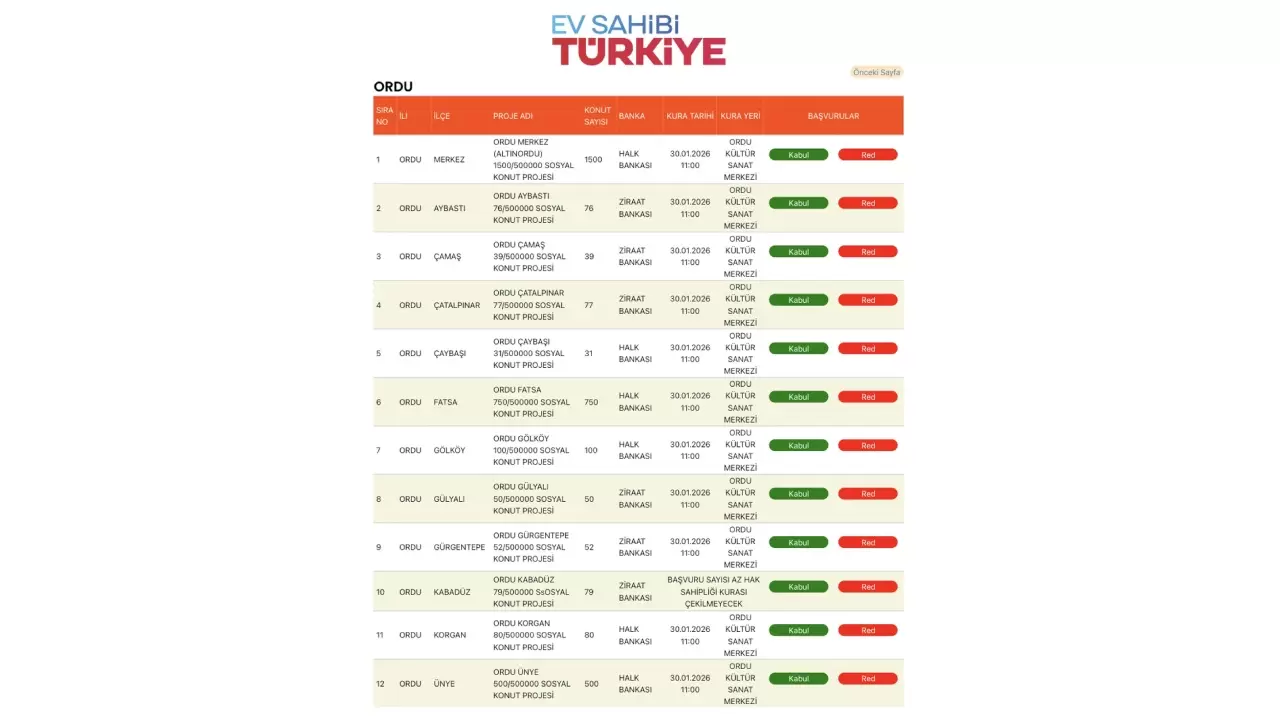 ORDU 500 BİN KONUT KURA SORGULAMA EKRANI!