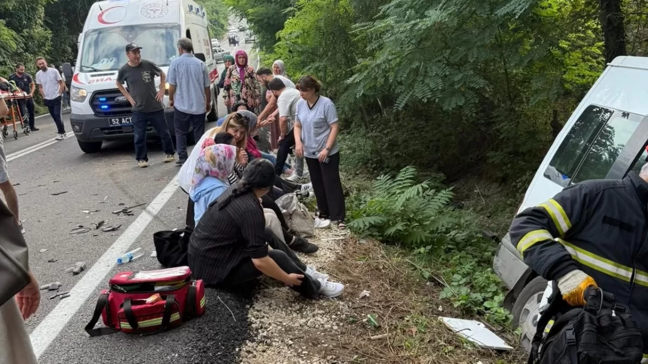 Çarpışma sonrası otomobil sürücüsü ile servis minibüsü sürücüsü ve yolculardan 13 kişi yaralandı. Çevredekilerin 112 Acil Çağrı Merkezine haber vermesi üzerine olay yerine sağlık, jandarma ve itfaiye ekipleri sevk edildi. Bölgeye gelen Ordu Büyükşehir Belediyesi Ünye İtfaiye Amirliği ekipleri yaralıları bulundukları yerden çıkardı.