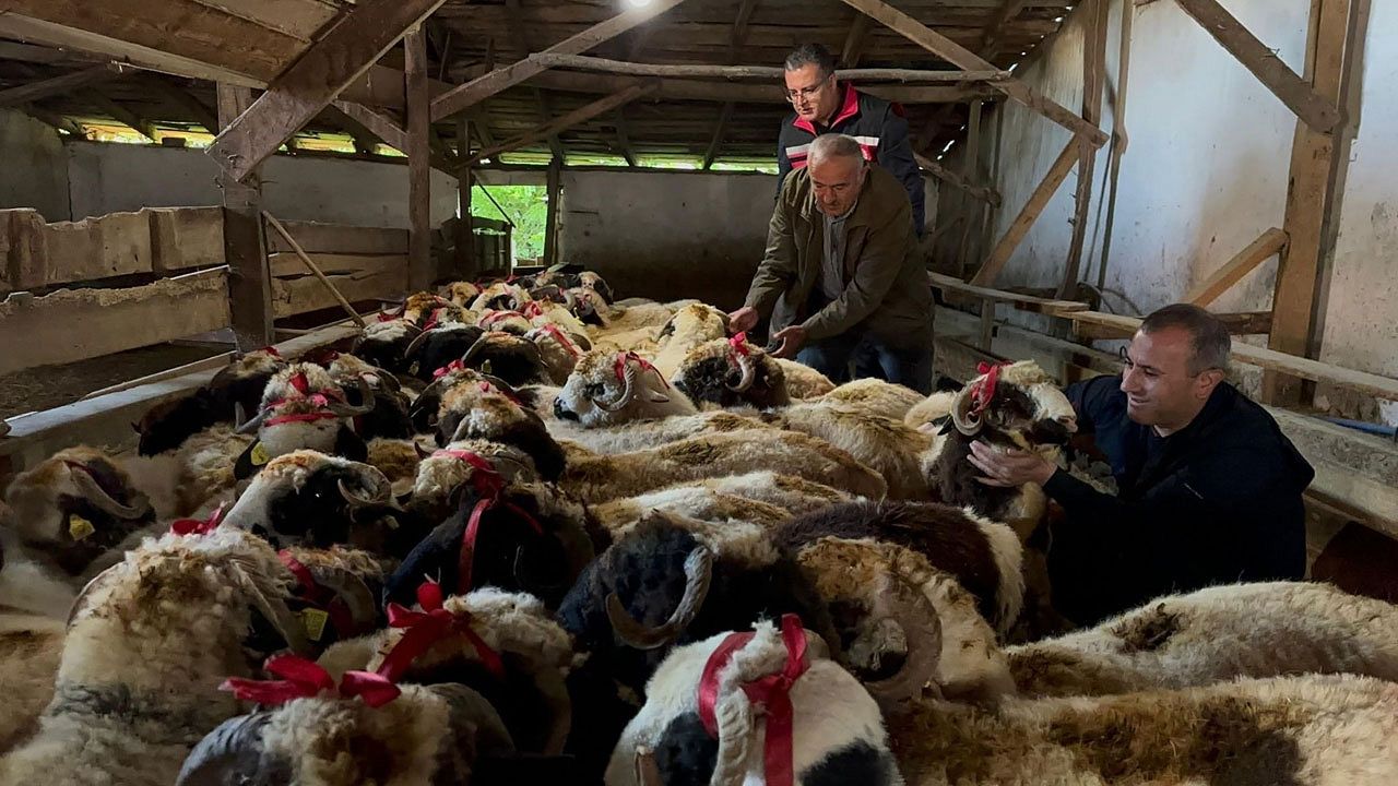 Beraberinde, İl Tarım ve Orman Müdürü Kemal Yılmaz ile birlikte kurbanlık koçların bulunduğu ağıla giden Vali Sonel, yetim ve öksüz çocuklara verilecek kurbanlık koçları seçti.