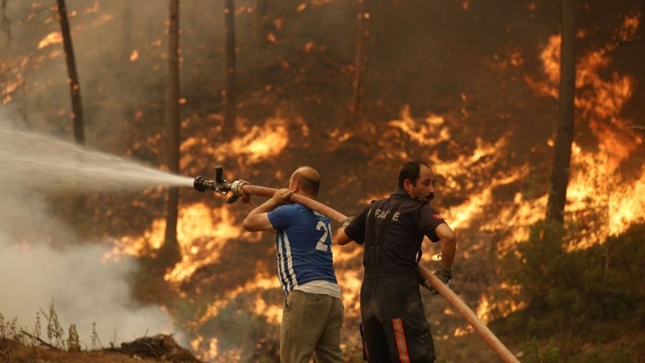 Ekipler gece boyunca arazöz ve itfaiye araçlarıyla söndürme çalışmalarını sürdürdü, havadan müdahale devam ediyor.