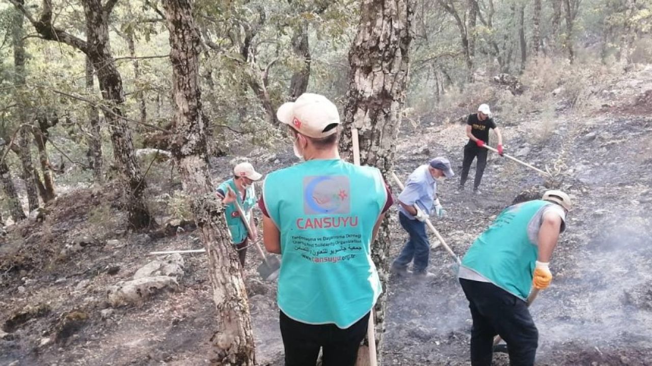 Türkiye’nin dört bir tarafını saran, son süreçte büyük çoğunluğu kontrol altına alınan Orman yangınları ile mücadele sürüyor. Cansuyu Yardımlaşma ve Dayanışma Derneği de yangınların başladığı ilk günden itibaren yangınları söndürme ve yangından etkilenen vatandaşlara acil insani yardımlarını ulaştırma noktasında çalışmalarını sürdürüyor.