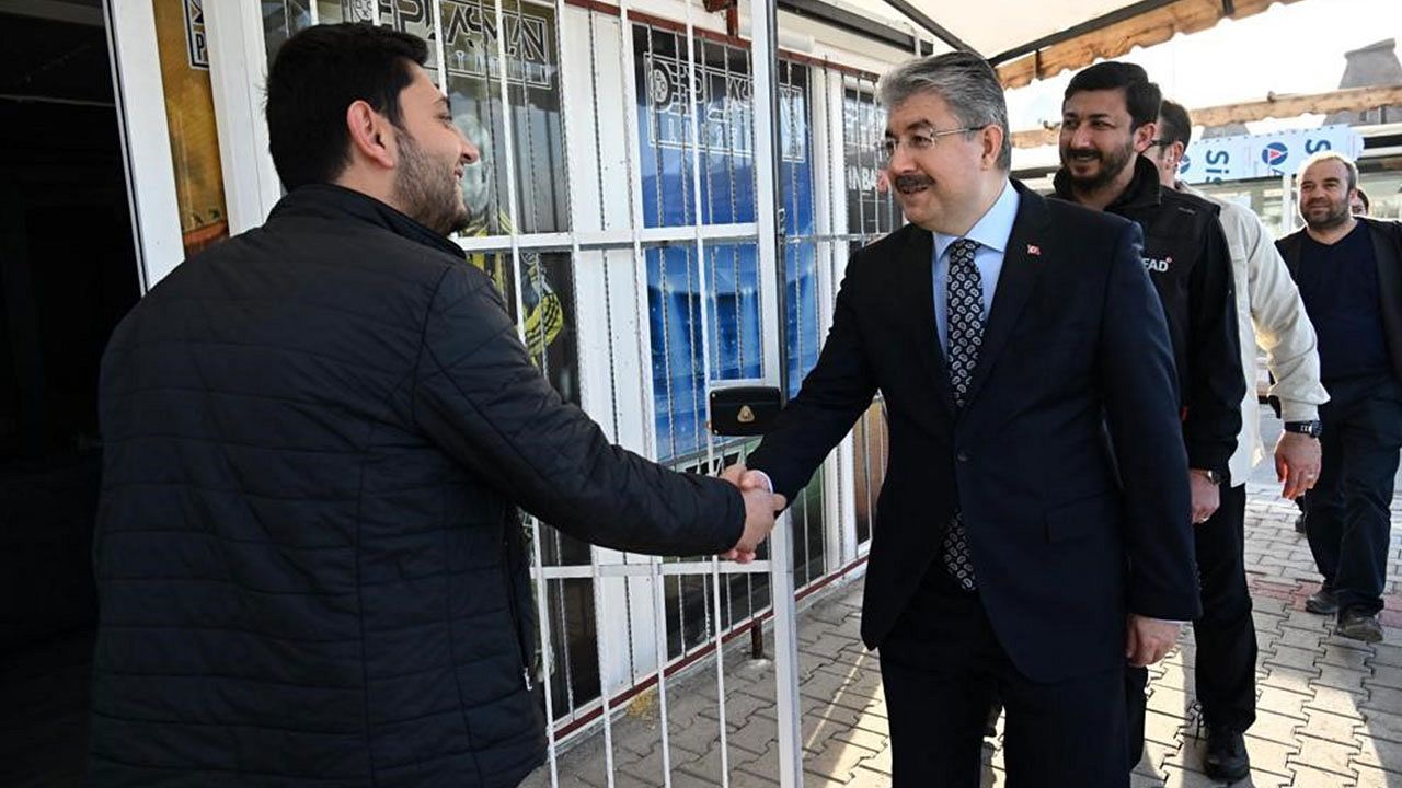 Dükkanlara yerleşen esnafla sohbet eden Yılmaz, konteyner çarşıda 104 dükkanın bulunduğunu belirtti.