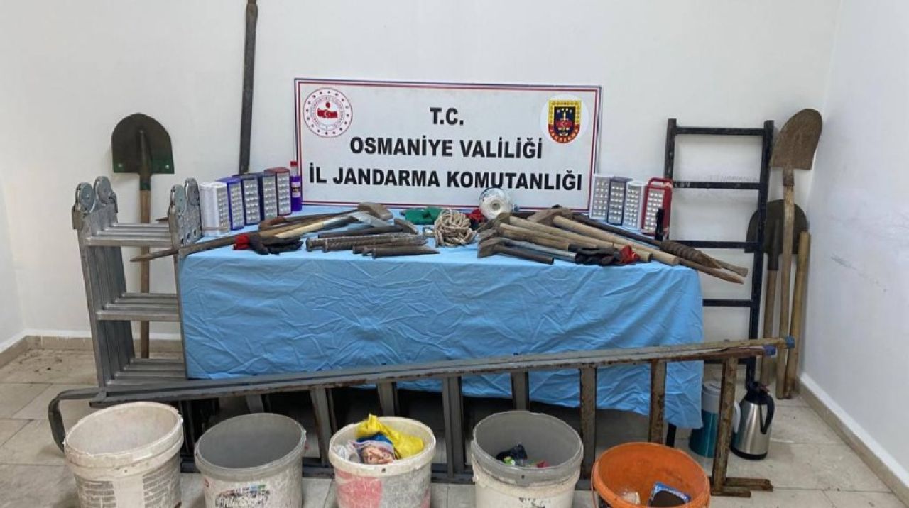 Ekipler, kaçak kazı yapan 9 şüpheliyi suçüstü yakaladı. Kazıda kullanılan 3 kürek, 9 el feneri, 9 kazma, 4 balyoz, 9 kazı demiri ile bir ip ele geçirildi.