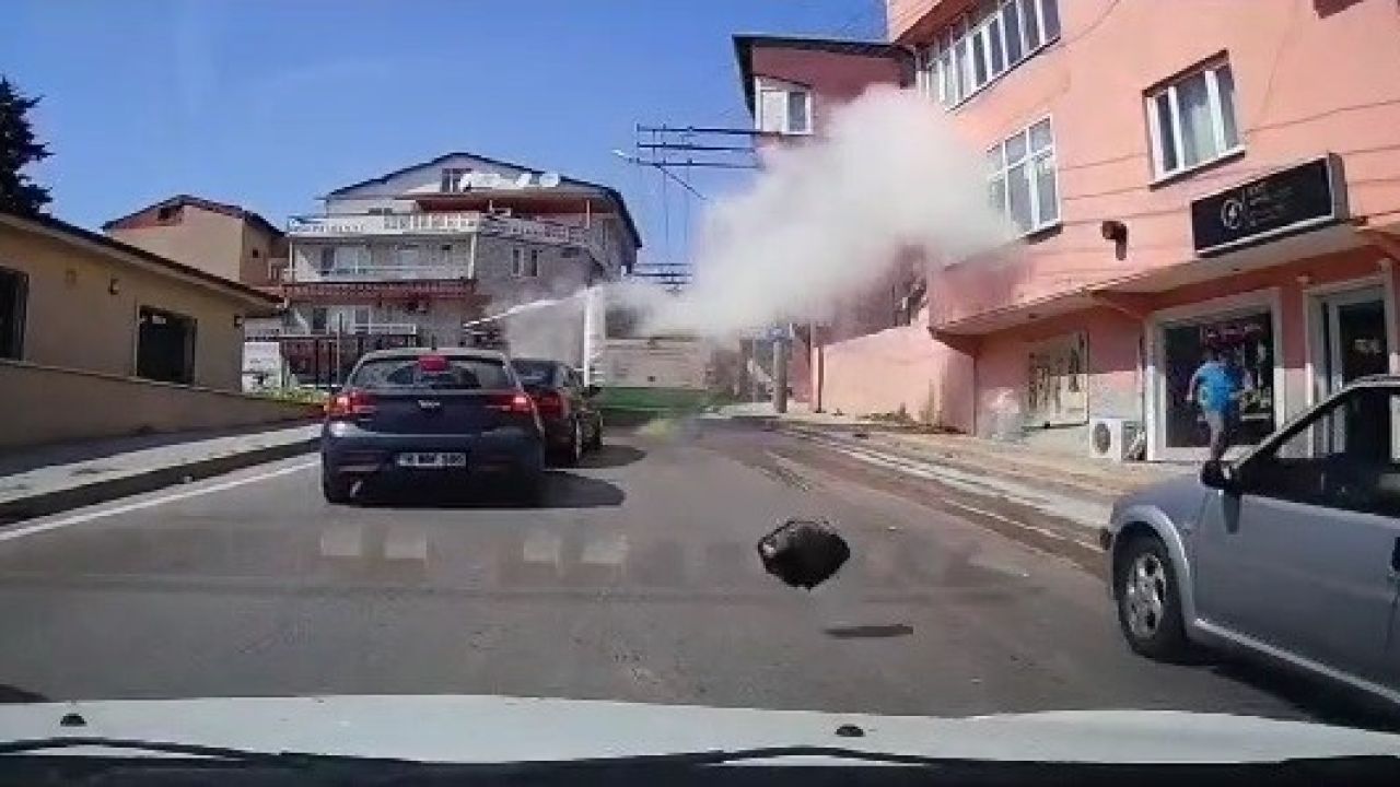 O anlar saniye saniye araç içi kamerasına yansırken, olayda şans eseri yaralanan olmadı. Otobüs şoförü, otobüsü tamir ettikten sonra yoluna devam etti.