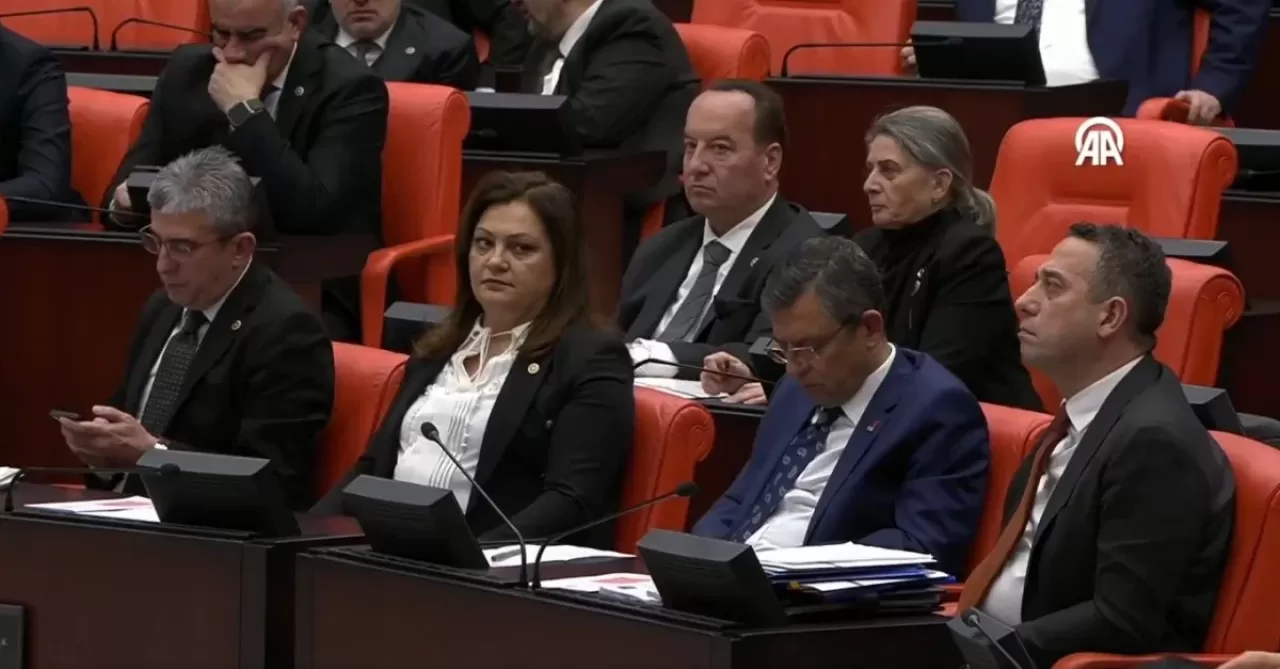 TBMM'de partisinin grup toplantısında konuştuktan sonra özel oturuma katılan CHP Genel Başkanı Özgür Özel'in, Hakan Fidan konuşurken gözlerinin kapalı olduğu görüldü.