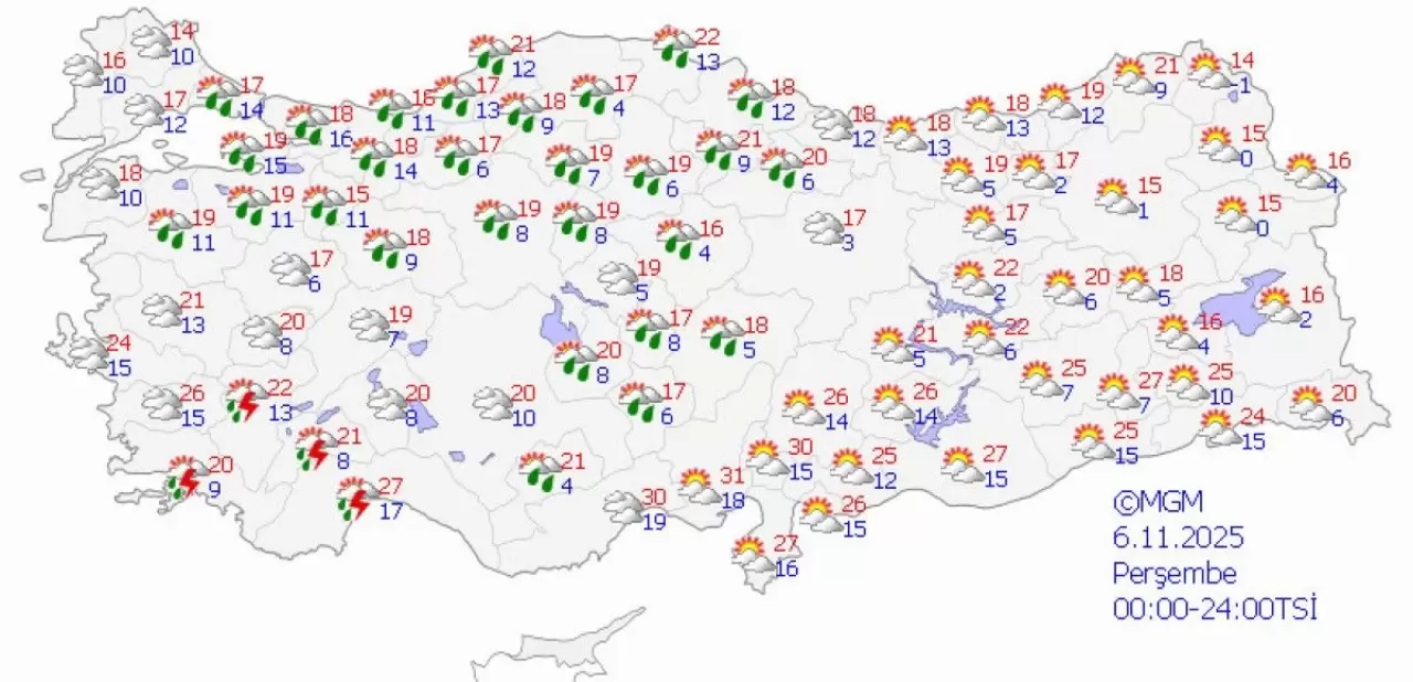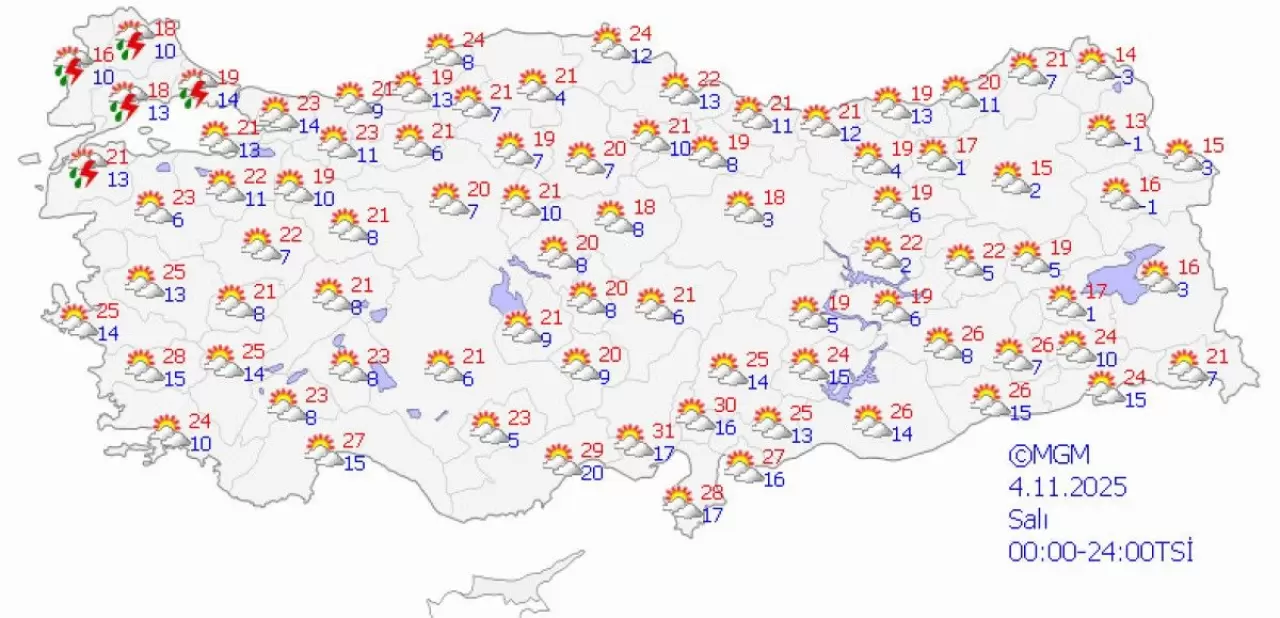 Ege, Akdeniz ve İç Anadolu bölgelerinde sıcaklıklar 20–28 derece arasında seyredecek.