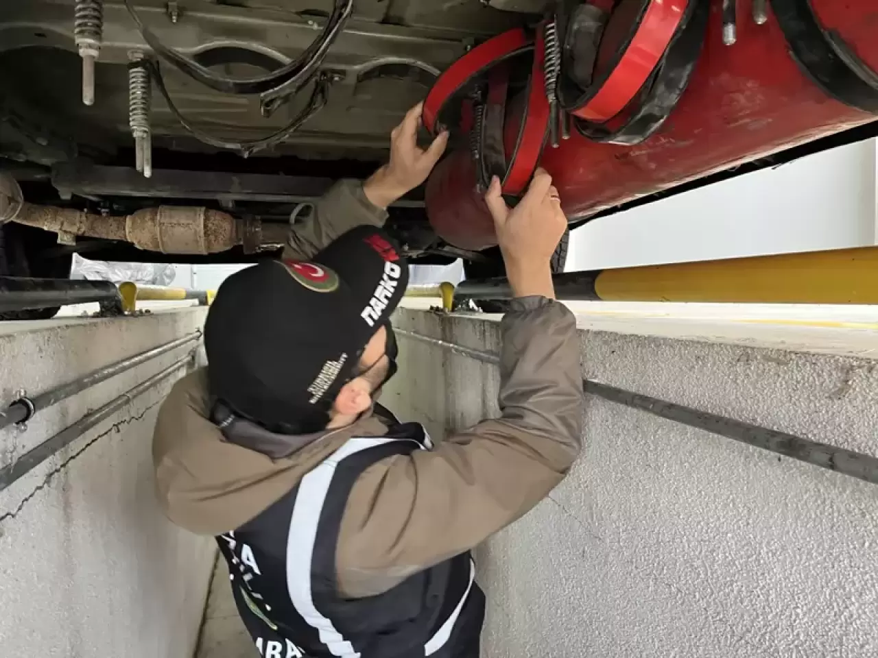 Narkotik dedektör köpeğinin katılımıyla yapılan aramada otomobilin alt bölümü ve LPG tankına gizlenmiş 19 kilo 692 gram esrar ele geçirildi.