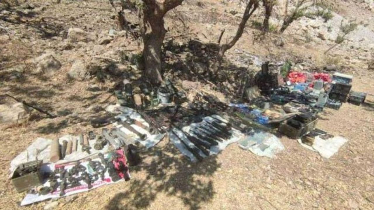 "2 RPG-7 roketatar, 9 AK-47 piyade tüfeği, 3 PKMS hafif makinalı tüfek, 1 Zağros keskin nişancı tüfeği, 5 Dragunov keskin nişancı tüfeği, 1 Strela-2 IR güdümlü silah, 3 AK-47 piyade tüfeği gövde komplesi, bomba atar, 6 roket atar sevk fişeği, 15 taarruz tipi el bombası, 32 savunma tipi el bombası, 48 bomba atar mühimmatı, 250 adet 5.56 mm mühimmat, 350 adet 7.62 mm mühimmat, güdümlü tanksavar silah sehpası,1 Doçka uçaksavar silahı namlusu, 6 Dragunov dürbün, 3 RPG-7 dürbün, çeşitli silahlarda kullanılan 3 dürbün komplesi, 60 şarjör, termal dürbün, el telsizi, 7 sabit telsiz, 2 kayıt cihazı, 3 fotoğraf makinası, 3 joystick yönlendirici kumanda, PTZ kamera, 2 dron yönlendirici kumanda, dron, dron kamerası, 22 dron bataryası, sinyal güçlendirici, motorlu testere, jeneratör, 2 hilti, 7 akü,1 havalandırma ünitesi ile muhtelif sağlık ve yaşam malzemeleri."