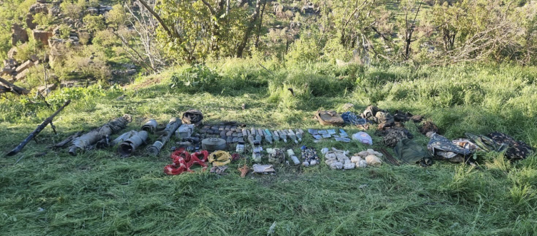 Bu kapsamda tespit edilen bir mağarada yapılan aramada, 3 AT-4 tanksavar silahı, Zagros keskin nişancı tüfeği, AK-47 piyade tüfeği, 8 el bombası, antitank mayını, 4 kilogram C4 patlayıcı, 5 EYP, 2 bin 500 adet 7,62 mm makineli tüfek mühimmatı, 20 tane 10'lu 5,45 mm mühimmatı, 9 RPG-7 antitank mühimmatı, 3 dragunov keskin nişancı tüfeği şarjörü, 8 AK-47 piyade tüfeği şarjörü, 4 M-16 şarjörü, 8 RPG-7 sevk fişeği, 55 metre infilaklı fitil, 20 metre saniyeli fitil, 9 elektrikli fünye, telsiz, el dürbünü, 6 termal şemsiye ve muhtelif yaşam malzemesi ele geçirildi.