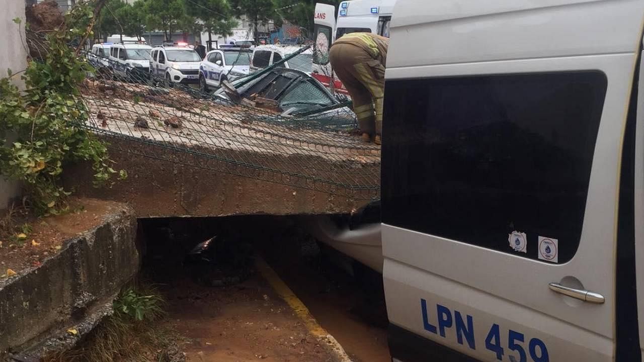 Pendik'te kuvvetli yağışla istinat duvarı araçların üzerine çöktü. İşçi servisinde sıkışan 5 kişiden 4'ü kurtarılırken bir kişiyi kurtarmak için çalışmalar sürüyor.
