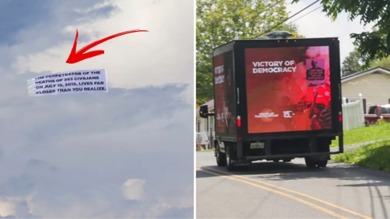 New York'un ardından Pensilvanya semalarına yönelen bir uçak, kuyruğuna asılı dev pankartta, "15 Temmuz 2016'da 253 masumun canına kıyanlar, size tahmin ettiğinizden çok daha yakın bir yerde yaşıyor." ifadelerini taşıyan mesajı yaydı.