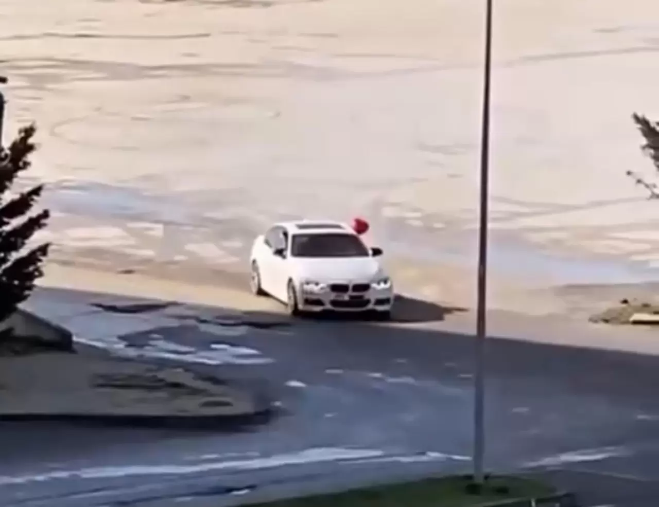 Kapaklı'nın GOP Caddesi'nde, B.Ç., kullandığı otomobilin plakasını bagajdan çıkardığı siyah cisimle kapattı. Daha sonra otomobili boş alana götüren Y.Ç. ise drift attı.