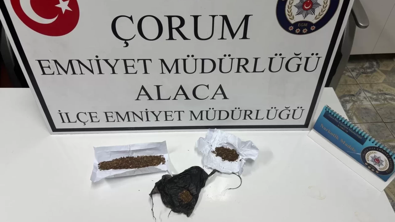Edinilen bilgiye göre, Alaca İlçe Emniyet Müdürlüğü ekipleri, Çorum Caddesi üzerinde şüphe üzerine bir otomobili durdurmak istedi. Polis ekiplerinin "dur" ihtarında bulunduğu sırada, araçta bulunan şahısların camdan dışarıya bazı maddeler attığı fark edildi. Aracı durduran ekipler, şahısları etkisiz hale getirirken, şahısların 3 paket halinde toplam 14 gram uyuşturucu maddeyi camdan dışarı attığı tespit edildi. Uyuşturucu maddelere el konulurken, araçta bulunan A.T., G.B., B.Ç. ve O.D. gözaltına alındı.