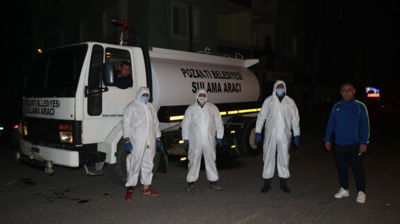 Pozantı Belediye Başkanı Mustafa Çayın talimatıyla özel olarak hazırlanan solüsyon ve dezenfektasyonlarla gündüz çöp konteynerleri dezenfekte edilirken gece de ilçedeki tüm cadde ve sokaklar solüsyonla yıkandı.