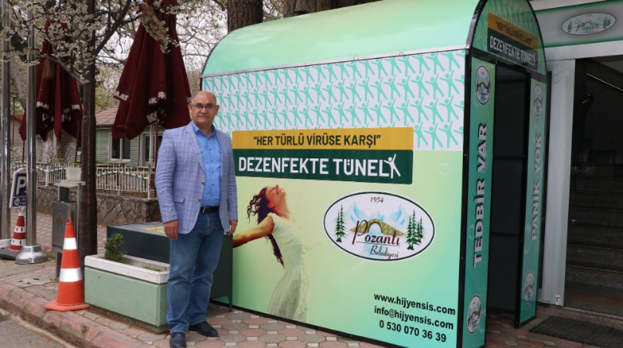 “Pozantı Belediye Başkanlığı önünde bulunan kaldırıma dezenfekte tüneli koyarak Kovid-19 ile mücadelemizde yeni bir adım daha atmış olduk. Ayrıca bundan sonra ilçemizde her Cuma günü kurulan semt pazarına vatandaş ve esnaf dezenfektan tünelinden geçiş yaparak maskeli olarak tek noktadan pazar alanına giriş yapacak. Tedbir bizden, takdiri Allah’tan, gayreti halktan. Hayırlı Olsun Pozantı.” ifadelerini kullandı.