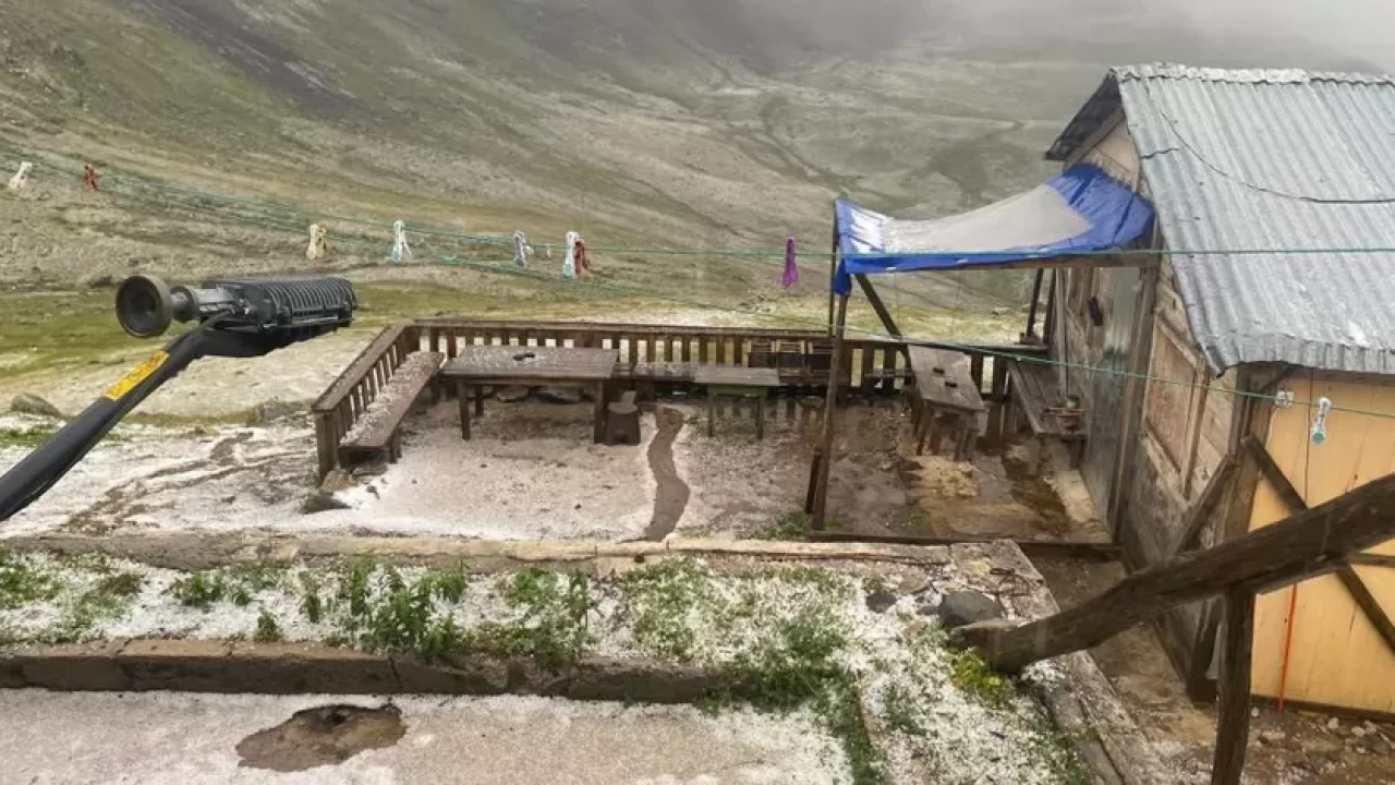 Rize’nin Çamlıhemşin ilçesine bağlı 2040 rakımdaki Hazindak Yaylası’nda yaşayan yaylacılar sabaha dolu yağışı ile uyandı.