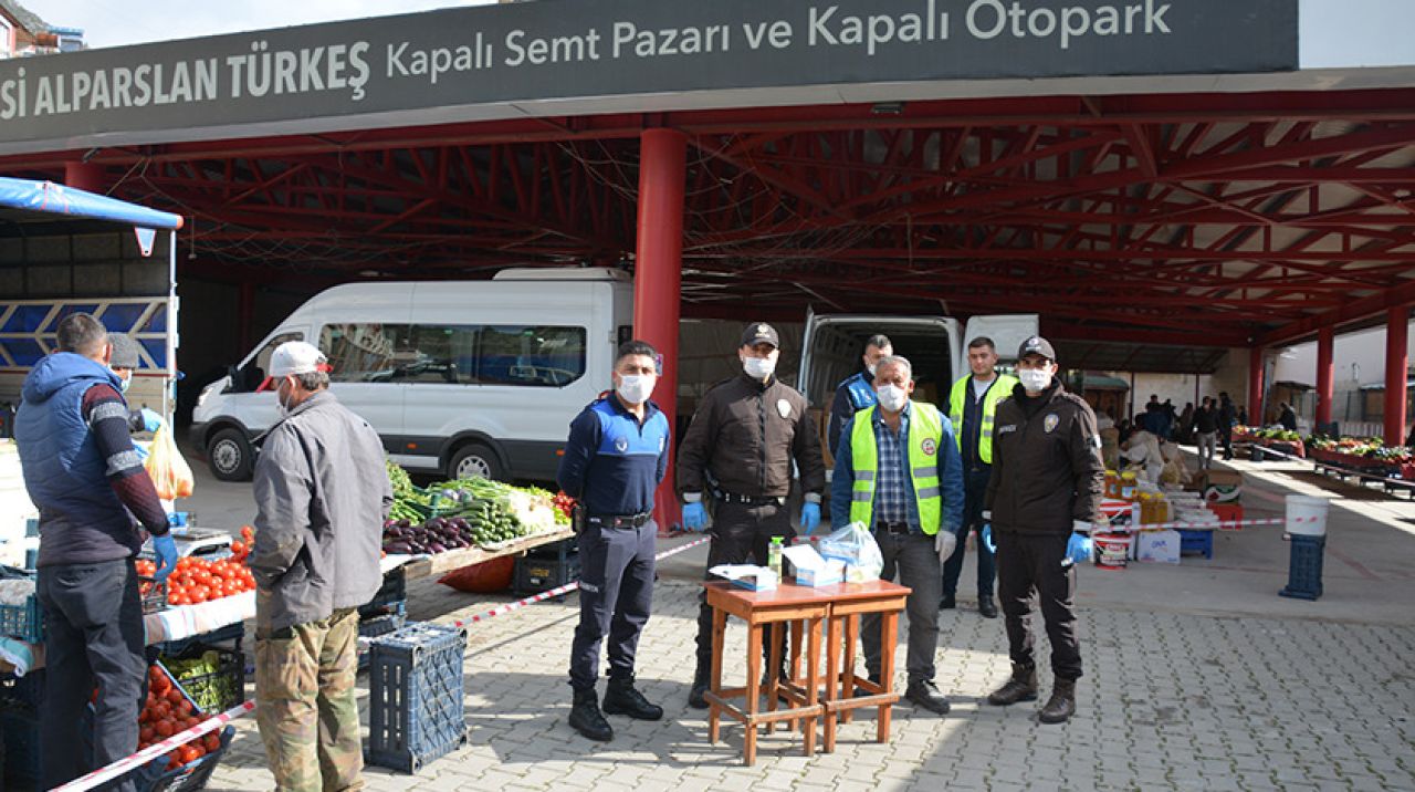 İlçemizde kurulan semt pazarı girişlerinde alınan tedbirler kapsamında ise ateş ölçümü, maske dağıtımı ve dezenfekten uygulaması personellerimiz tarafından vatandaşlarımıza uygulandı.