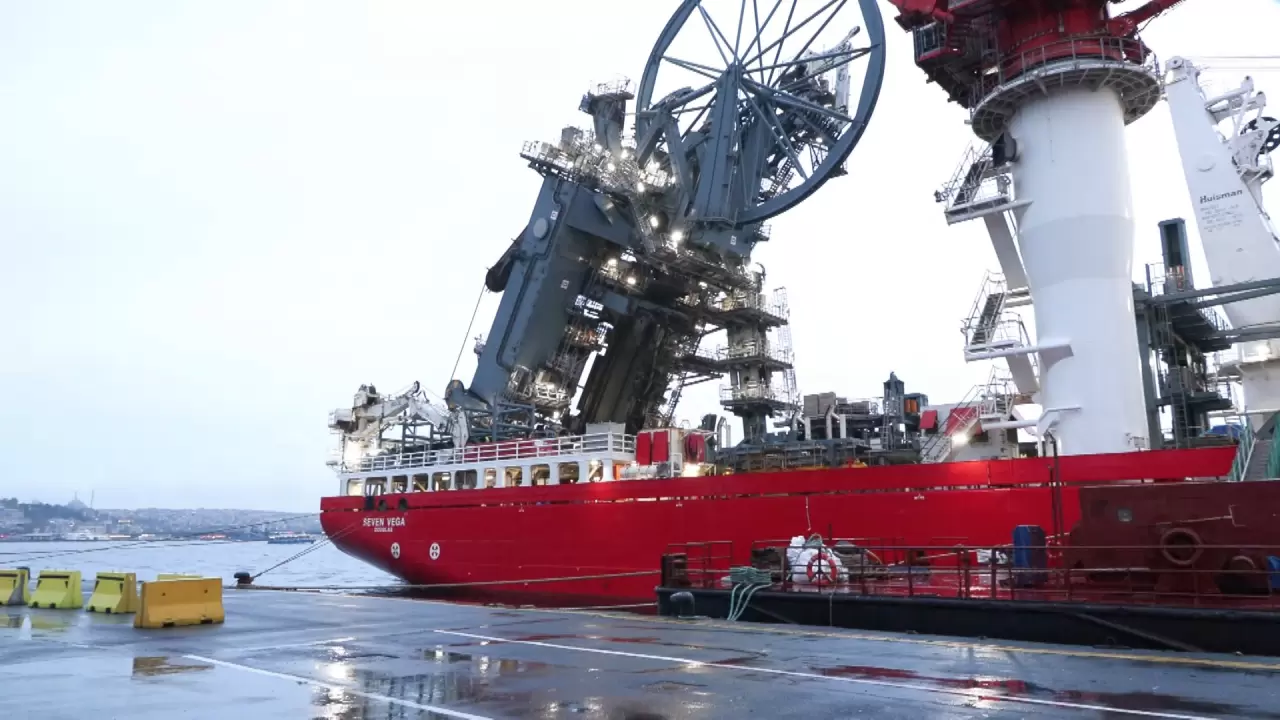 Sakarya gaz sahasında yürütülen Faz 2 çalışmalarında deniz altına boru hattı kuracak olan Seven Vega gemisi Sarayburnu'na demirledi.