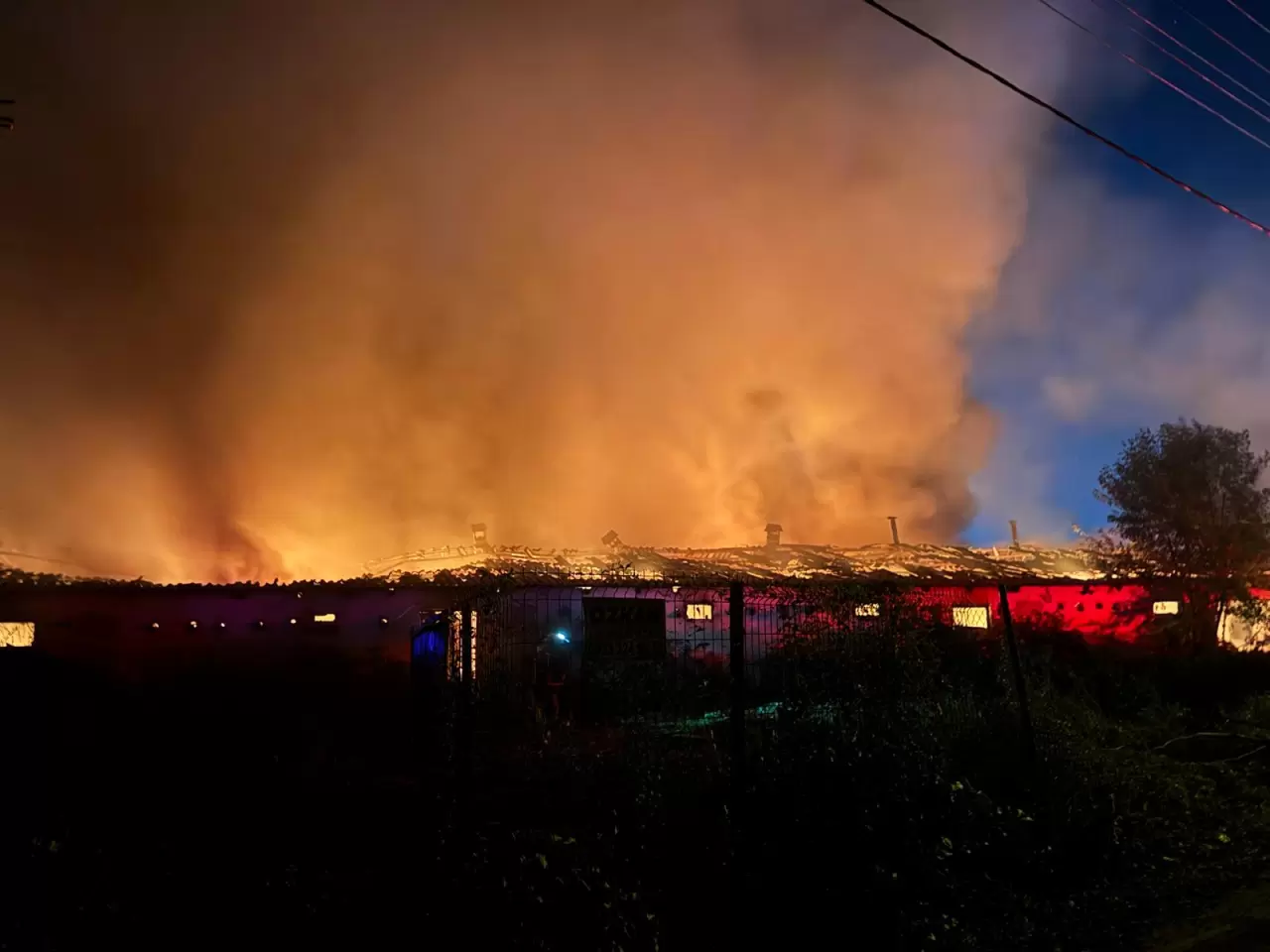 Yangın nedeniyle bölgede yoğun duman oluşurken, ara ara patlama sesleri duyuluyor.