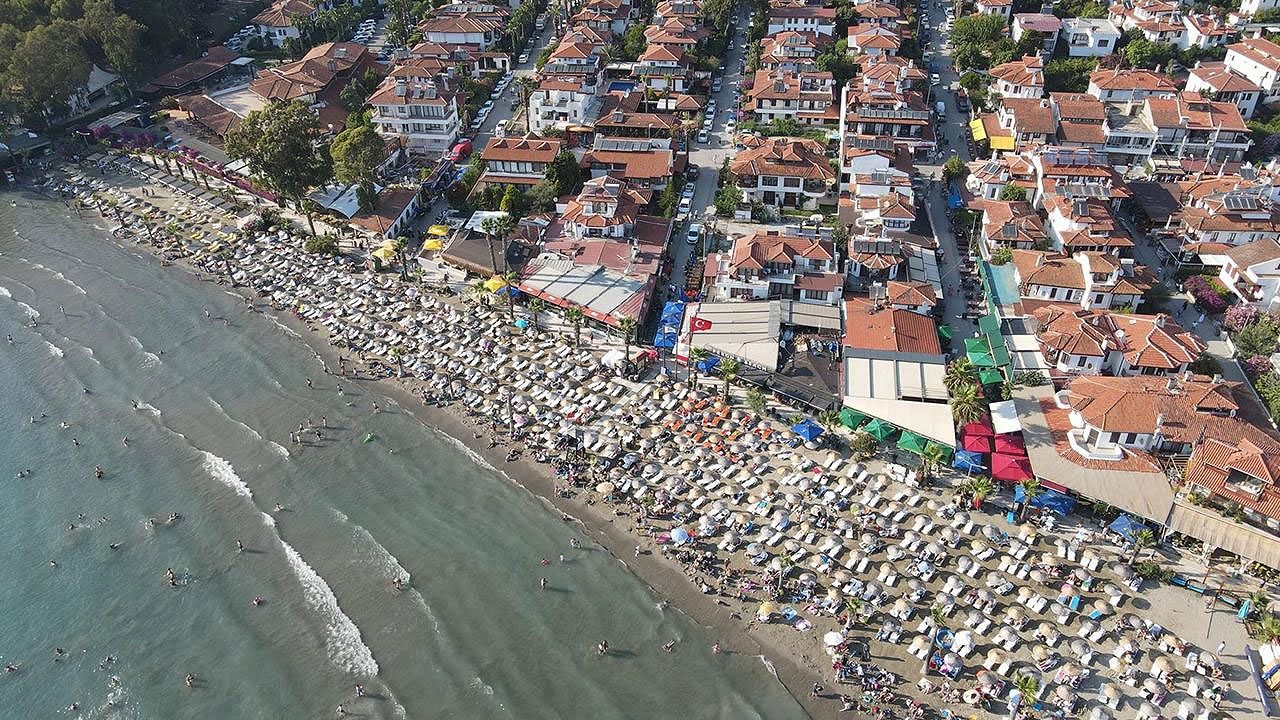 Mavi bayraklı "Halk Plajı"ndaki yoğunluk ise havadan görüntülendi.