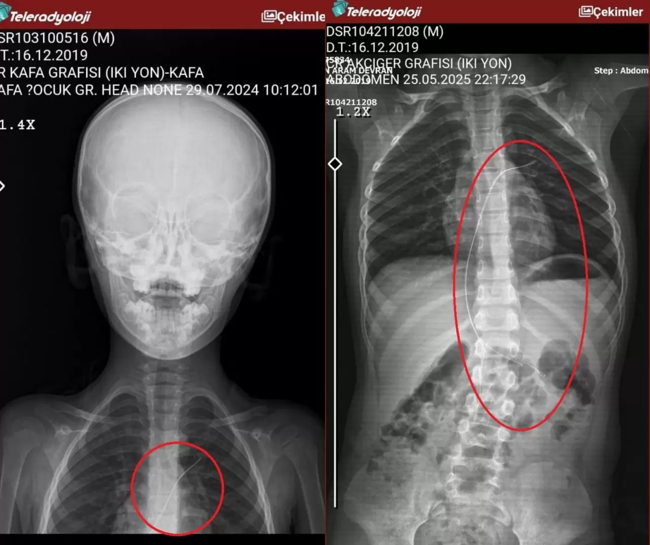 Şırnak’ta piknikte salatalık parçası yuttuktan sonra öksürük ve kusma şikayetleriyle hastaneye götürülen 6 yaşındaki Aram Devran Ötün’ün, 3 yıl önce Stevens- Johnson sendromu nedeniyle tedavi gördüğü sırada damar yoluna takılan 18 santimetrelik kateterin vücudunda unutulduğu ortaya çıktı. Öğüt, 5,5 saat süren riskli bir ameliyatla kateterden kurtuldu.