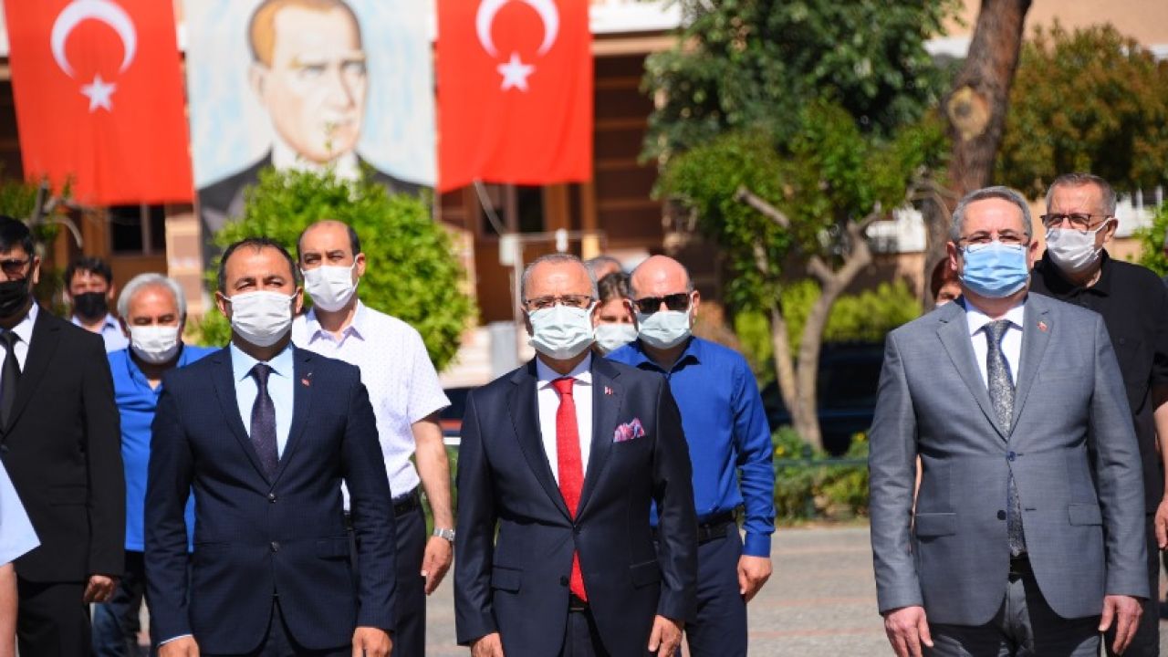 Çelenk sunma törenine, Kaymakam Mehmet Kamil Sağlam, Belediye Başkanı Zeki Kayda, Cumhuriyet Başsavcısı Mustafa Balık, İlçe Emniyet Müdürü Mehmet Mesut Doğan, İlçe Jandarma Komutanı Binbaşı Mehmet Alşen, İlçe Gençlik ve Spor Müdürü Oktay Ayaz, siyasi parti temsilcileri ve kurum amirleri ile öğretmen ve öğrenciler katıldı.