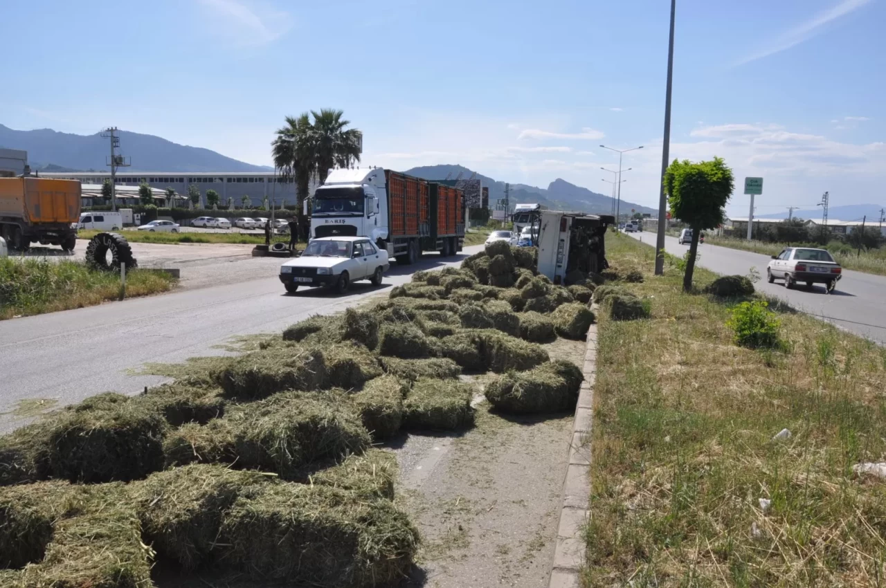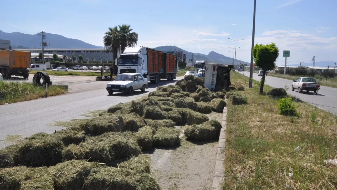 Bir süre tek şeritten sağlanan trafik akışı, aracın ve saman balyalarının yoldan kaldırılmasının ardından normale döndü.