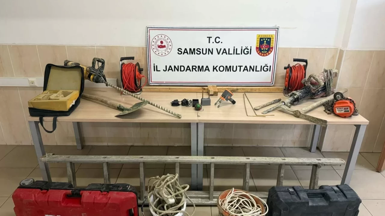 Samsun'un Alaçam ilçesinde 6 kişi, define aramak için kaçak kazı yaparken jandarma tarafından suçüstü yakalandı. Kazıda kullanılan aletlere el konuldu, şüpheliler hakkında adli işlem başlatıldı.