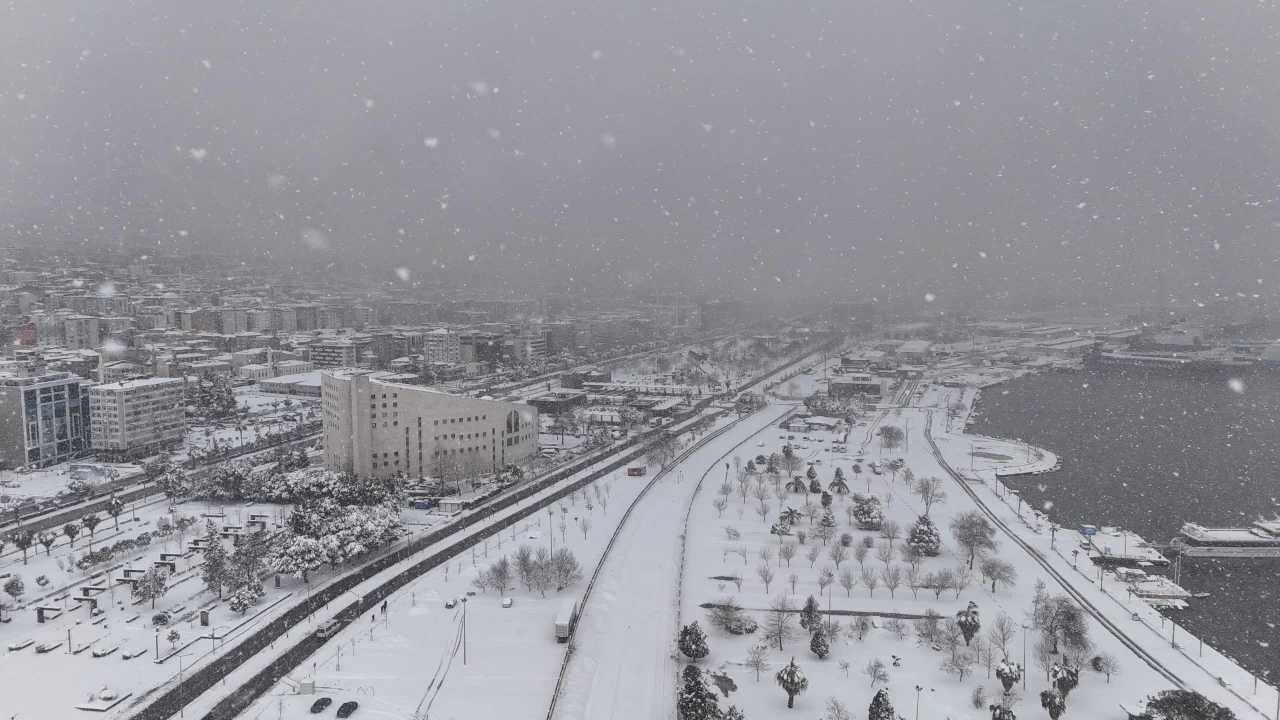 Şehirde kar fırtınası aralıklarla etkili olmaya devam ediyor.
