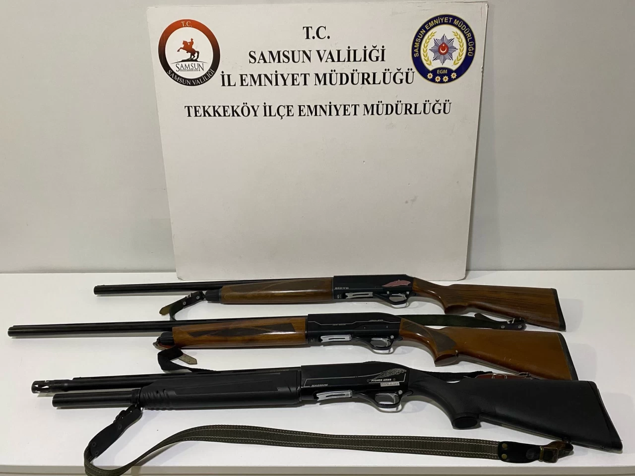 Edinilen bilgiye göre, Tekkeköy İlçe Emniyet Müdürlüğü ekipleri, Sanayi Mahallesi Liman Tersane Alanı’nda gerçekleştirilen kontrol sırasında 3 şahsı 3 adet ruhsatsız otomatik av tüfeği ile yakaladı. Olayla ilgili şüpheliler hakkında yasal işlem başlatıldı.