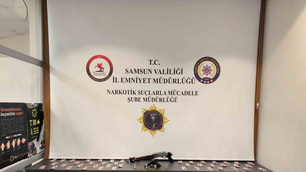 Samsun İl Emniyet Müdürlüğü ekipleri tarafından, uyuşturucu madde ticareti, nakli veya depolanması faaliyetlerini yürüten şahısların yakalanmasına yönelik Atakum ilçesinde 3 ikamete operasyon düzenlendi. Yapılan operasyonda bin 430 adet sentetik ecza, 1 adet ruhsatsız tabanca, 1 adet pompalı tüfek, 43 adet tabanca fişeği, 4 adet tüfek kartuşu ve uyuşturucu satışından elde edildiği değerlendirilen 11 bin 400 TL ele geçirildi. Operasyonda E.K, E.E. ve A.A. isimli 3 şahıs yakalanarak gözaltına alındı ve haklarında adli işlem başlatıldı.