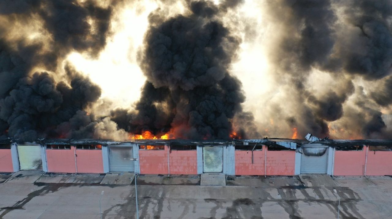 Kısa sürede büyüyen depodaki yangın nedeniyle zaman zaman patlama sesleri duyuldu.