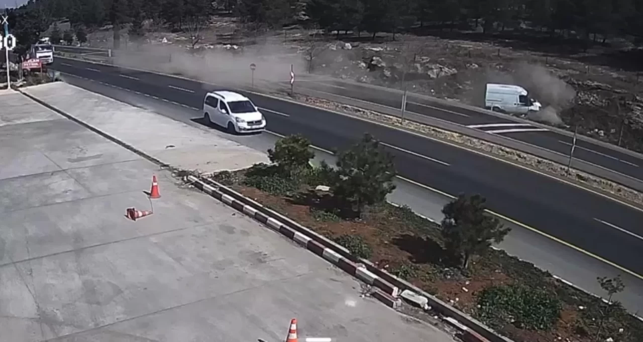 Kaza anı ise bölgedeki bir akaryakıt istasyonunun güvenlik kamerasına yansıdı.