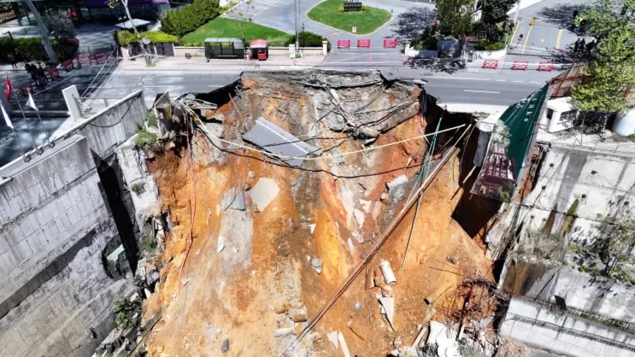 Maslak'ta Eski Büyükdere Caddesi'nde bir inşaat alanına ait istinat duvarının yıkılması nedeniyle hemen yanında bulunan yol çökmüştü.