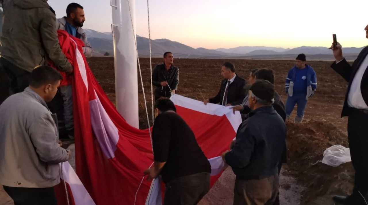 Başkan Baki Bayrak, İlçenin hakim tepelerinden olan Karayolları Bakımevi mevkiine çalışma ekibiyle gelerek 27 metre yüksekliğinde dev bayrak direğine 6 metreye 9 metre büyüklüğünde 56 metrelik bayrak yaptırdı.