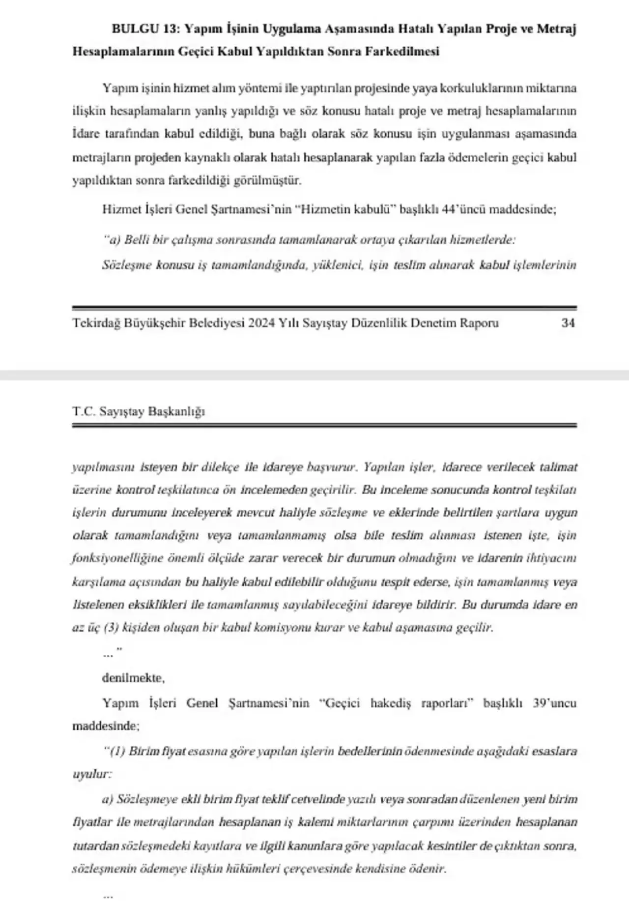Sayıştay'ın CHP'li Tekirdağ Büyükşehir Belediyesi'ne yönelik 2024 yılı düzenlilik denetimi, belediyenin çeşitli birimlerinde ihale süreçlerinden mali işlemlere, personel ödemelerinden imar denetimlerine kadar toplam 19 ayrı mevzuata aykırılığı ortaya çıkardı. Raporda, yıllardır tamamlanamayan yapım işleri, rekabeti daraltan şartnameler, izinsiz kamuoyu araştırması ödemeleri, kaydı olmayan personele fazla mesai verilmesi ve ticari plakaların ihalesiz kullandırılması gibi dikkat çeken usulsüzlükler yer aldı.