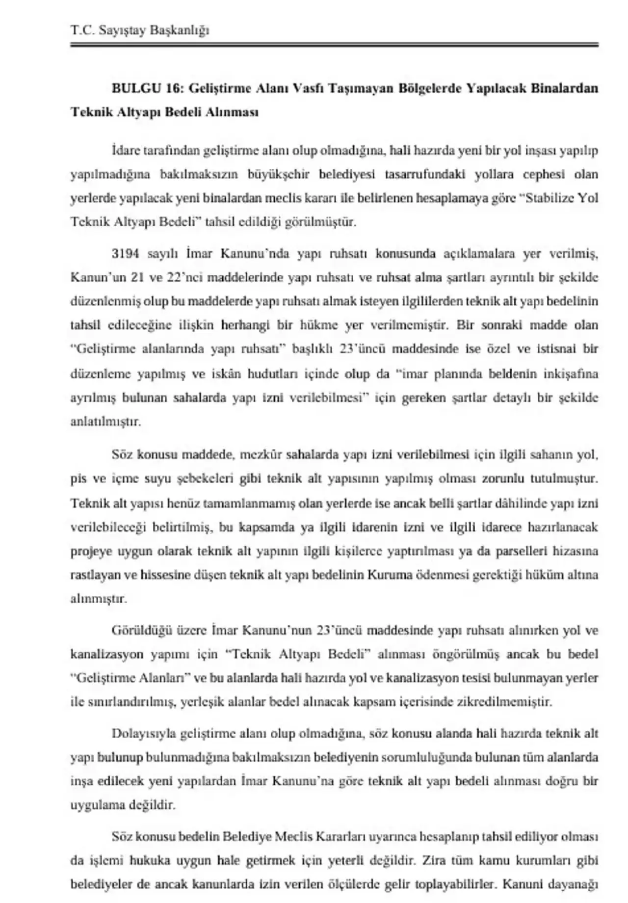 Rapor, sözleşmesi feshedilen yükleniciler hakkında mevzuatın zorunlu tuttuğu ihalelere katılmaktan yasaklama işlemlerinin yapılmadığını da ortaya koydu. Belediyenin yetkisi olmasına rağmen bazı ilçelerde imar uygulamalarını denetlemediği, yüklenicilere ödeme yapılırken "vadesi geçmiş vergi borcu yoktur" belgelerinin kontrol edilmediği ve bu nedenle mevzuata aykırı ödemeler gerçekleştirildiği belirtildi.