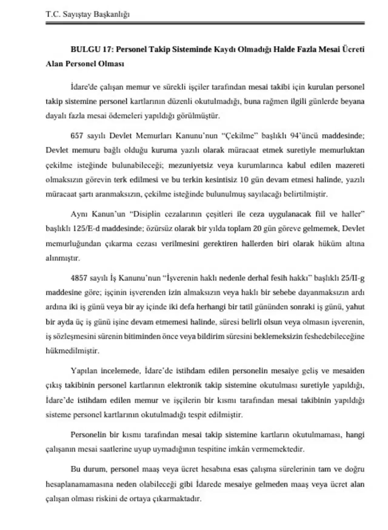 PERSONEL TAKİP SİSTEMİNE KAYDI OLMAYAN BİR PERSONELE FAZLA MESAİ ÜCRETİ ÖDENDİ