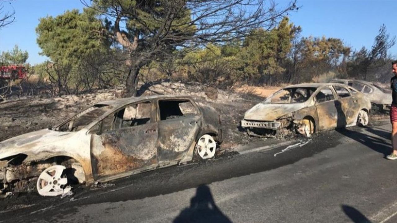 Öte yandan, yangın alanının yakınında bulunan plaja denize girmek için gelenlerin araçları da yangından etkilendi.