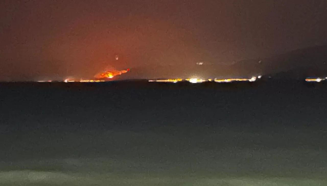 İzmir’in Seferihisar ilçesinde 2 gün önce başlayan orman yangını kontrol altına alınamazken, yangının oluşturduğu dumanlar ve alevler Kuşadası’ndan görülüyor. Özellikle akşam saatlerinde alevlerin parlaklığı Kuşadası sahil şeridinden net şekilde seçiliyor.