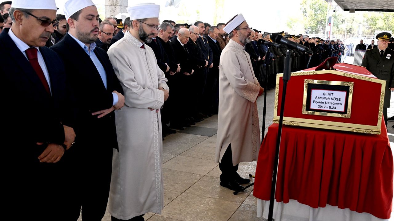 Pençe-Kilit operasyonu bölgesinde bölücü terör örgütü ile girilen çatışmada şehit olan Piyade Üsteğmen Abdullah Köse, Ankara’da düzenlenen cenaze töreninin ardından son yolculuğuna uğurlandı. Ahmet Hamdi Akseki Camii’nde düzenlenen törene şehit Köse’nin ailesi ve yakınlarının yanı sıra Milli Eğitim Bakanı Yusuf Tekin, Milliyetçi Hareket Partisi Genel Başkanı Devlet Bahçeli, Büyük Birlik Partisi Genel Başkanı Mustafa Destici, Genelkurmay Başkanı Orgeneral Metin Gürak, Deniz Kuvvetleri Komutanı Oramiral Ercüment Tatlıoğlu, Jandarma Genel Komutanı Orgeneral Arif Çetin ve Ankara Valisi Vasip Şahin katıldı.