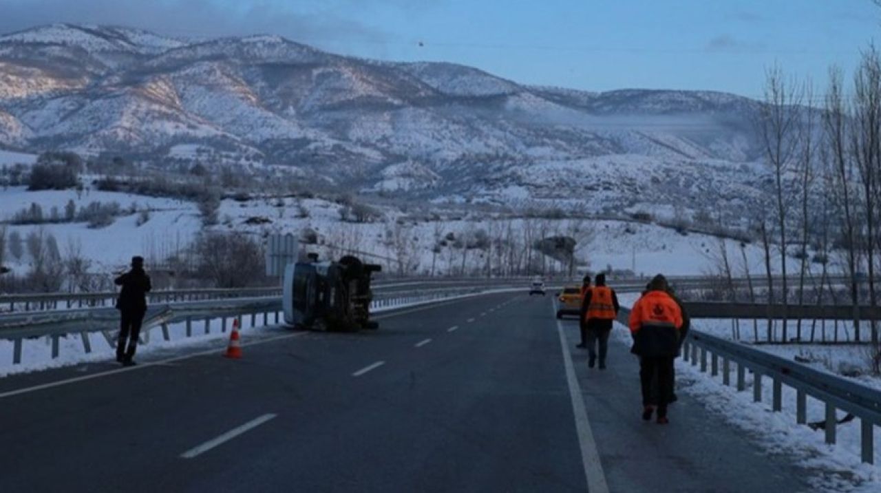 Uzman Çavuş Mustafa Sağlam idaresindeki askerleri taşıyan servis aracı, buzlanmanın olduğu Tokat-Niksar kara yolu Almus kavşağı yakınlarında bariyere çarparak devrildi.