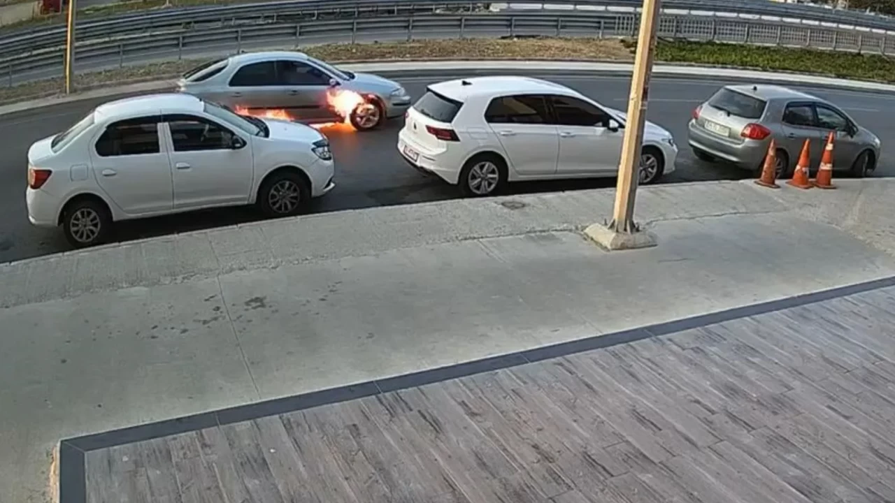 Silivri’de D-100 Karayolu yan yol üzerinde, eski Emniyet Müdürlüğü mevkiinde seyir halindeki bir binek araçta bilinmeyen bir nedenle yangın çıktı. Aracı durduran sürücü ve yanında bulunan bir kişi bagajdan yangın söndürme tüpünü çıkararak alevlere sıkmaya başladı. Çevredeki esnafın da yardımıyla yangın büyümeden söndürüldü. Araçta maddi hasar meydana gelirken, olay sırasında herhangi bir yaralanma yaşanmadığı öğrenildi.