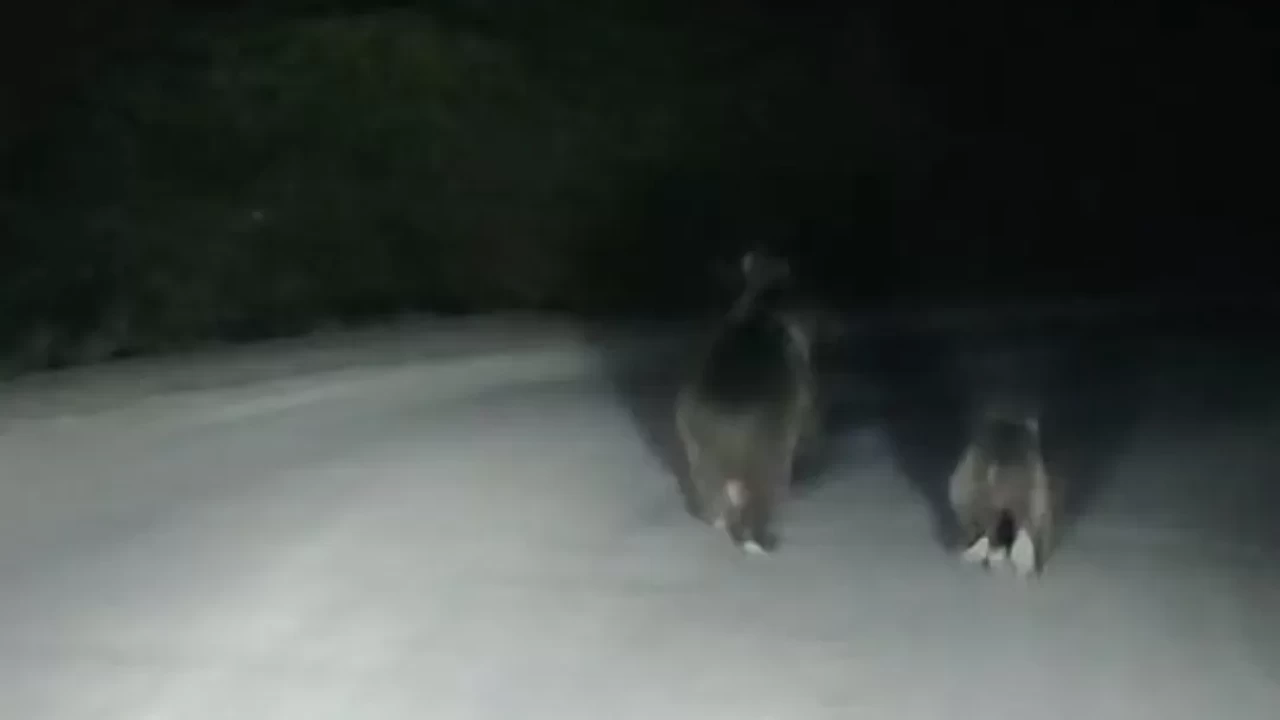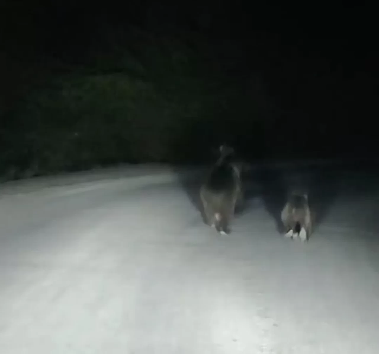 Bartın'ın Ulus ilçesi Ulukaya Kadıköyü grup yolu üzerinde otomobil ile seyir halinde bulunan bir vatandaş, yolda bulunan bir ayı ve yavrusunu gördü. Ayı ve yavrusu otomobilin ışıklarını görünce hızla kaçmaya başladı. Ayıları gören vatandaş ise cep telefonu kamerası ile o anları görüntüledi. Ayılar bir süre sonra ormana girerek gözden kayboldu.