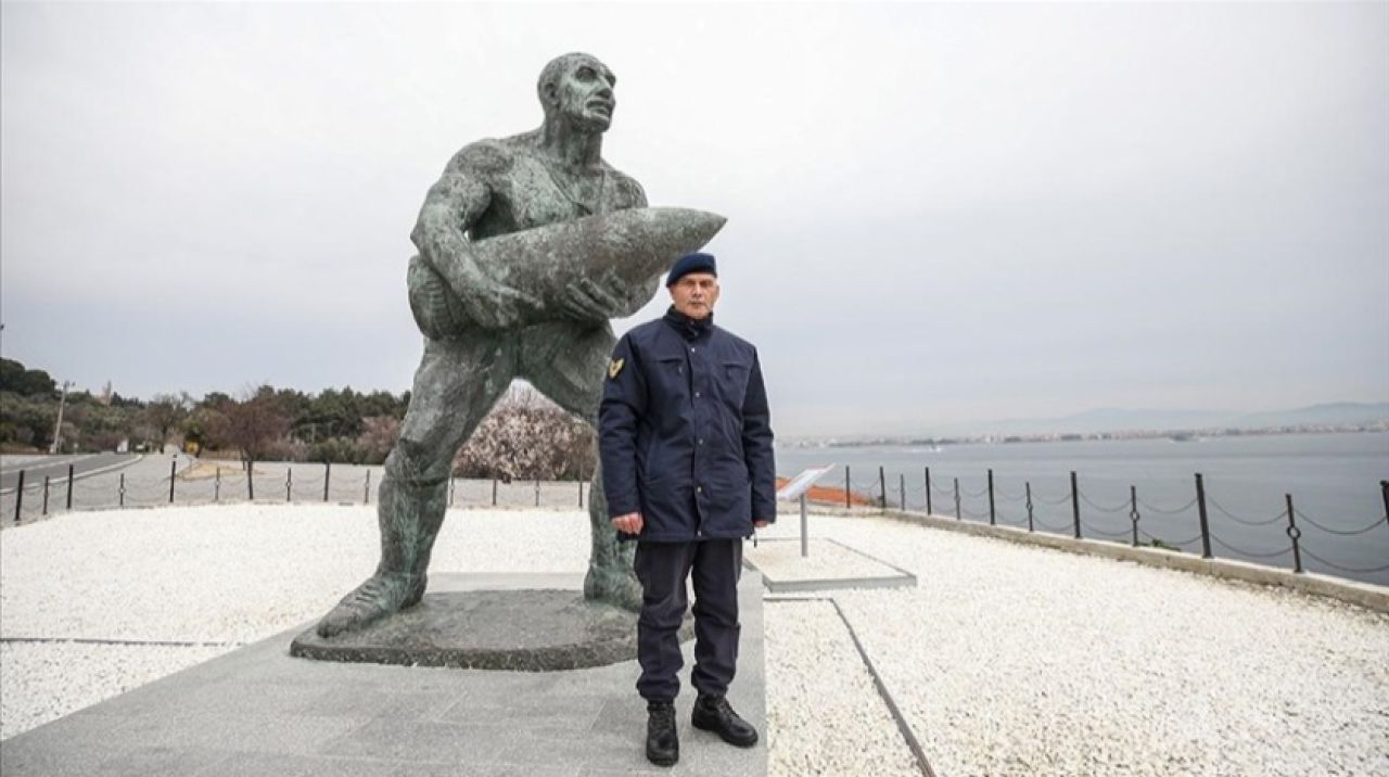 Savaşları'nda sırtladığı ağır top mermisini kundağa yerleştirerek zaferde büyük pay sahibi olan Seyit Onbaşı'nın üçüncü kuşaktan torunu Jandarma Astsubay Kıdemli Üstçavuş Seyit Çabuk, Şehitleri Anma Günü ve Çanakkale Deniz Zaferi törenlerindeki görevi için Manisa'dan geldi.