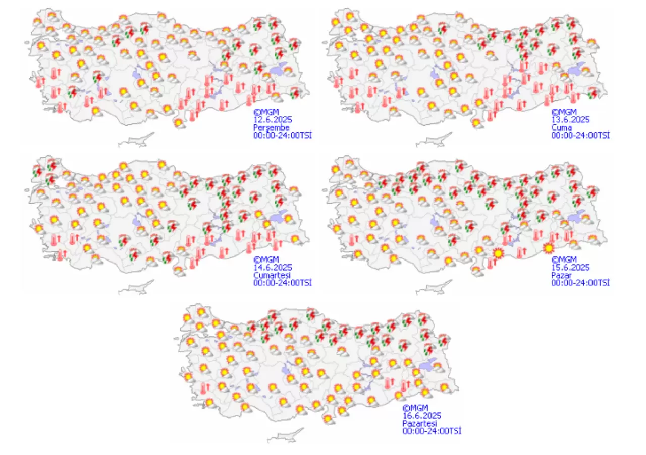 Meteoroloji Genel Müdürlüğü tarafından yapılan tahminlere göre, yurdun kuzey ve doğu kesimlerinin parçalı, yer yer çok bulutlu, Batı Karadeniz'in iç kesimleri, Doğu Akdeniz'in Toroslar mevkii, Doğu Karadeniz'in iç kesimleri, Doğu Anadolu Bölgesi'nin kuzey ve doğusu ile Afyonkarahisar ve Denizli çevreleri, Antalya'nın iç kesimleri, Ankara'nın kuzey ve batısı ve Eskişehir'in doğusunun yerel olmak üzere sağanak ve gök gürültülü sağanak yağışlı, diğer yerlerin az bulutlu ve açık geçeceği tahmin ediliyor.