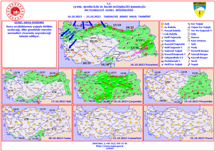 Cuma gününden itibaren ise hafta sonu dahil yurt genelinde yağış beklenmiyor. Yurt genelinde parçalı ve çok bulutlu hava hakim olurken sıcaklıklar mevsim normalleri civarında seyredecek.
