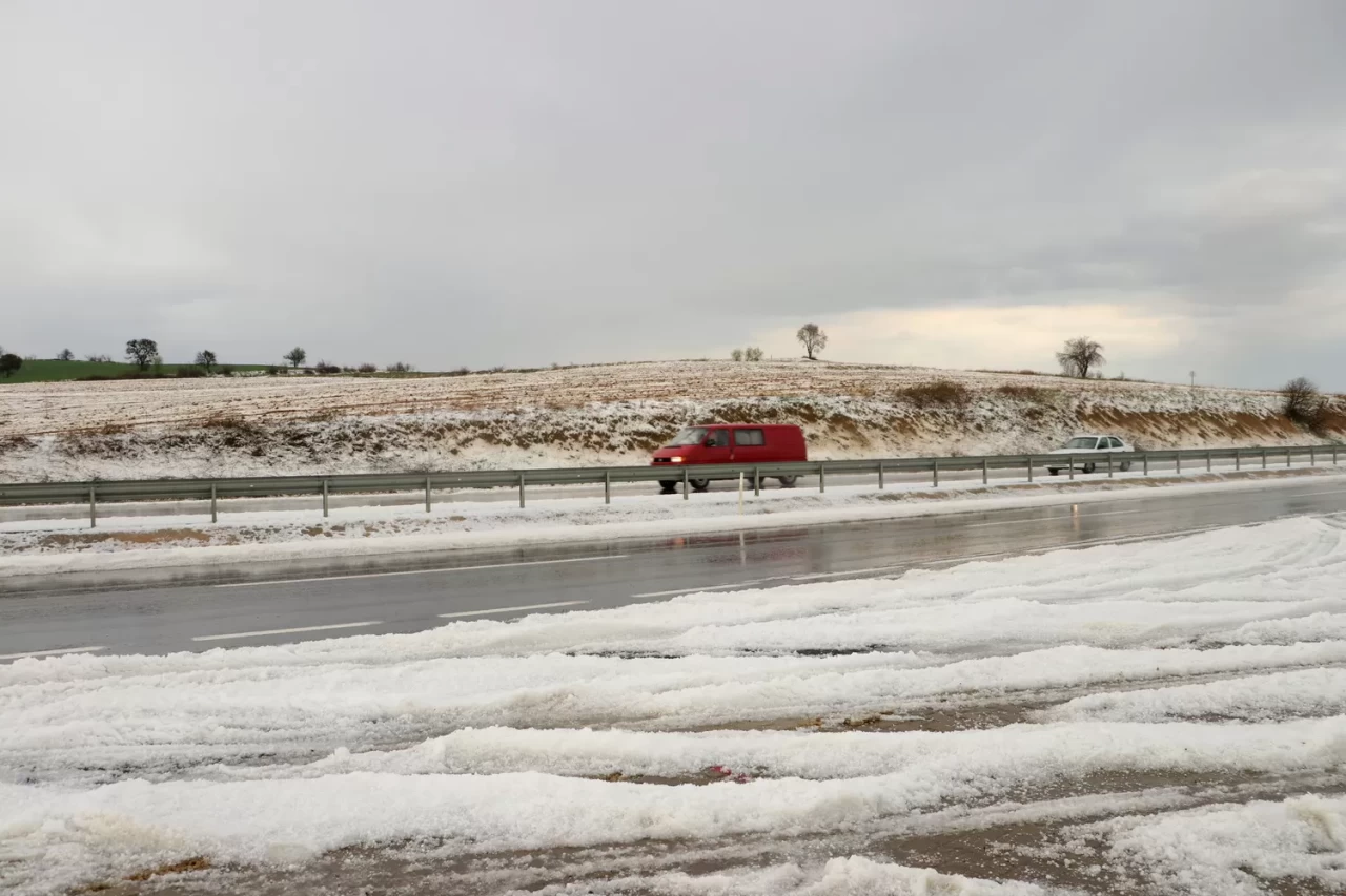 Bölge, yaklaşık 15 dakikalık yağışın ardından beyaza büründü.